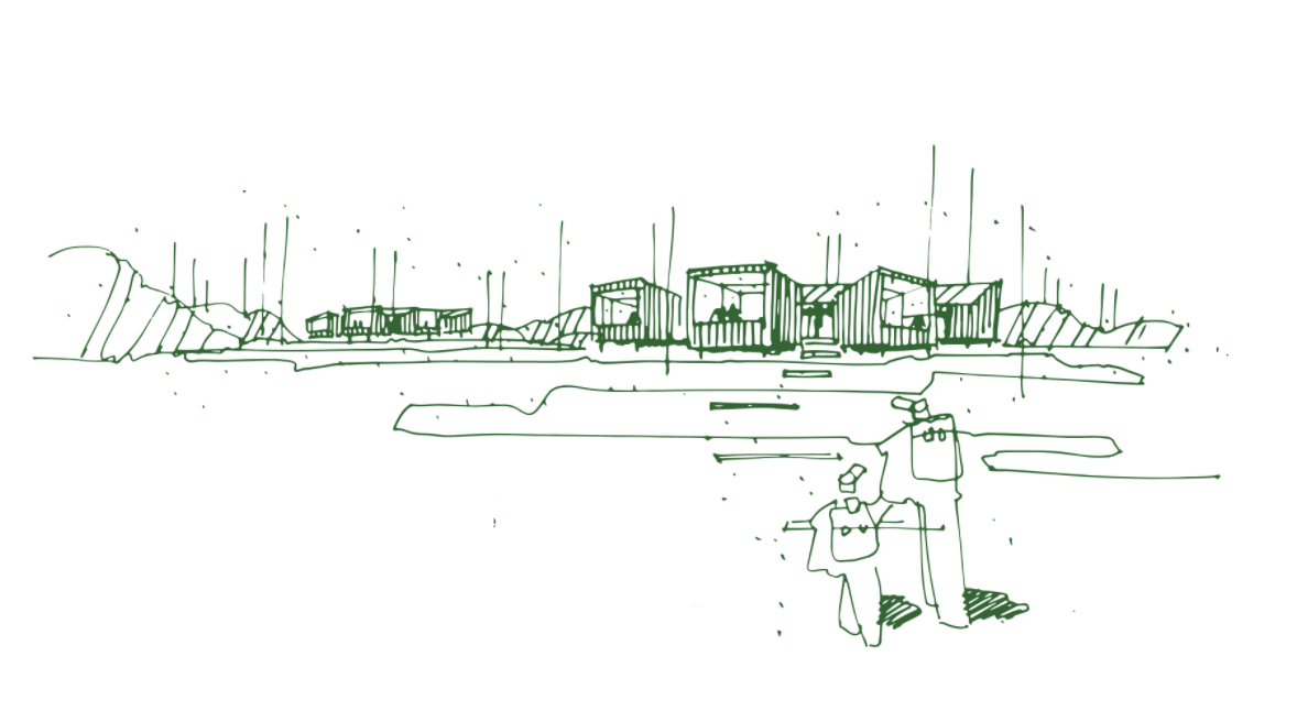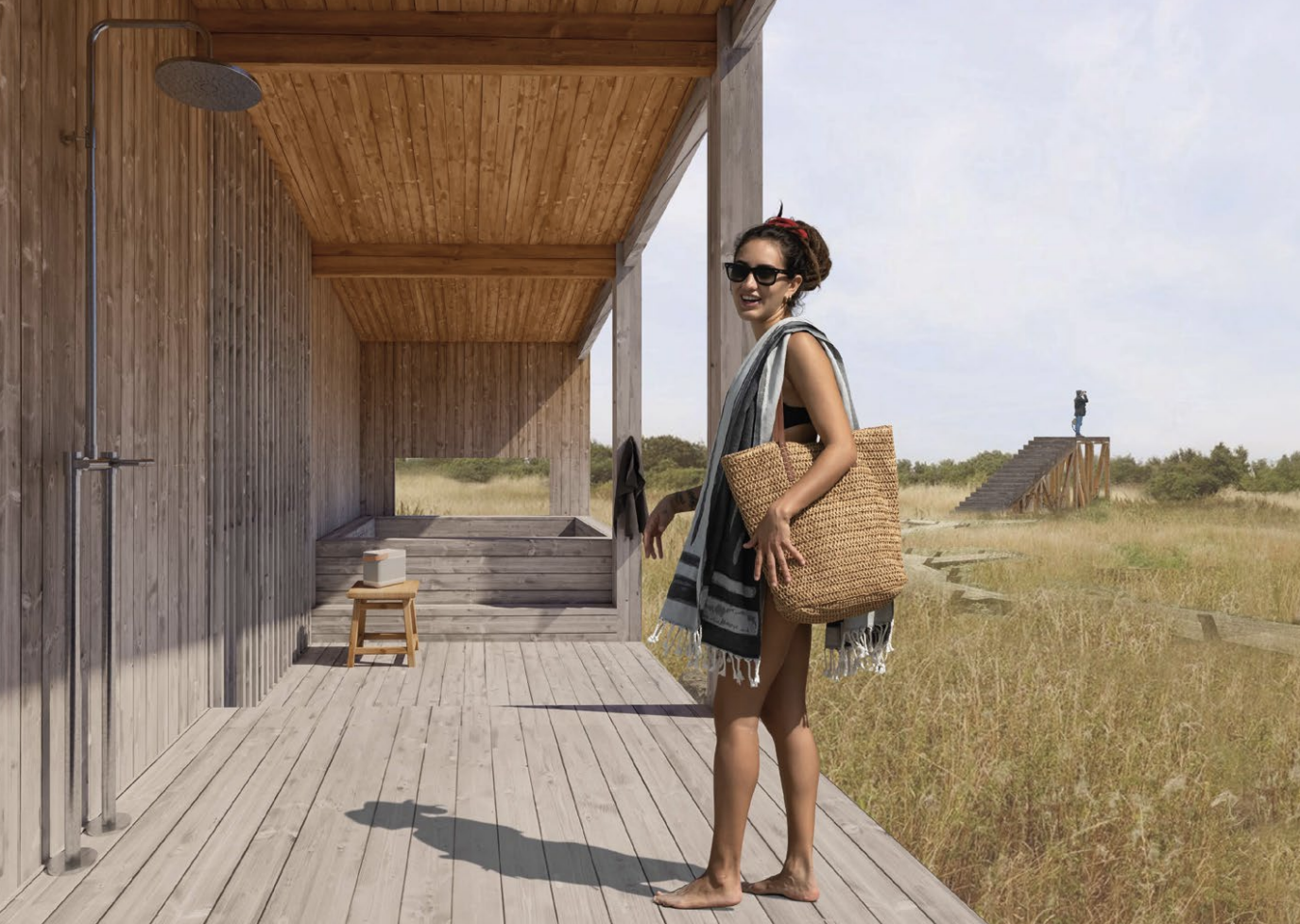 Arkitekturen trækker på naturen som sit fundament og skaber rum, der indbyder til både fordybelse og samvær. Trædæk, adgangsveje og bademuligheder er integreret med respekt for landskabet og stedets karakter, så de bliver en naturlig del af helheden.